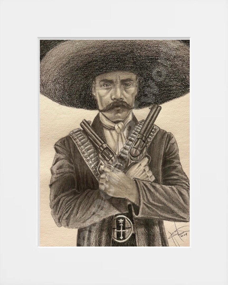 Honor the legacy of a true revolutionary with this powerful Zapata art print by poncieARTwork. Created in 2024, this piece captures the spirit of Emiliano Zapata — a symbol of resistance, justice, and cultural pride. Each print is part of an open edition, hand-signed and numbered by the artist Poncie, and ready to inspire.