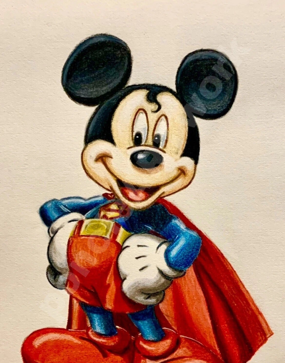 Bring home a unique piece of pop-culture mashup art! This matted print features Mickey Mouse & Superman in an imaginative crossover, created by poncieARTwork (2022). Each print is hand-signed by Poncie and individually numbered within this open edition. A Certificate of Authenticity (COA) is included with every purchase.